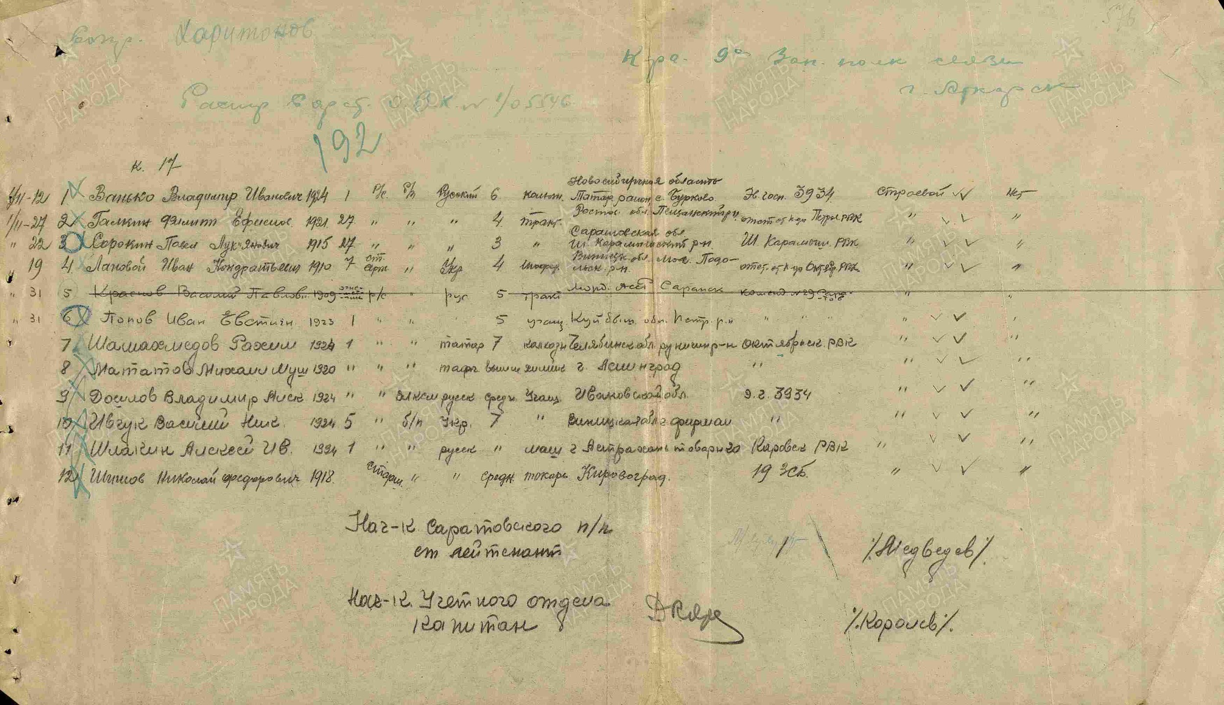 ЦАМОРФ ф. Саратовский ВПП оп. 188106 д. 72 л. 192